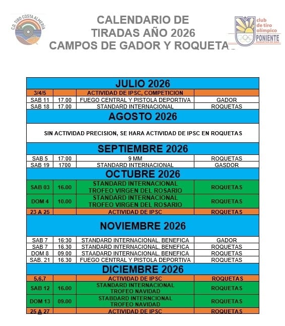Ya tenemos el calendario de competición para este año 2026 que será el siguiente: