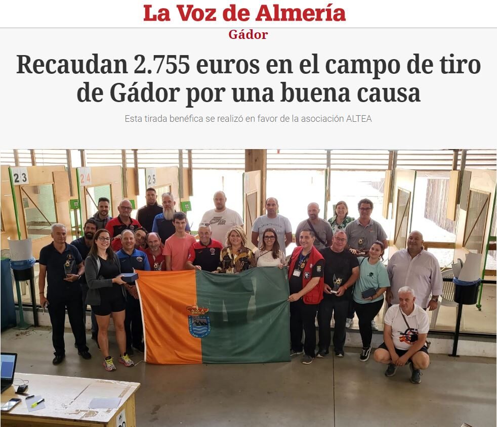 El importe integro de la inscripción (20€ por tirador) ira destinado a la asociación ALTEA autismo de Almería, así como las personas que deseen colaborar en PUESTO 0 y las empresas patrocinadoras.