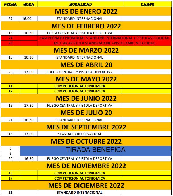 Se confirma el calendario de competiciones para el año 2024. Las competiciones se realizaran en los campos de tiro de los Juegos del Mediterráneo en Gádor y el campo de tiro del club en Roquetas de Mar.